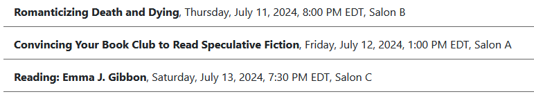 The weekend after that, I will be at Camp Necon. Again, if you’re there, please say hello! I’m only doing one panel at this one, but I will be selling books at the meet the authors party.